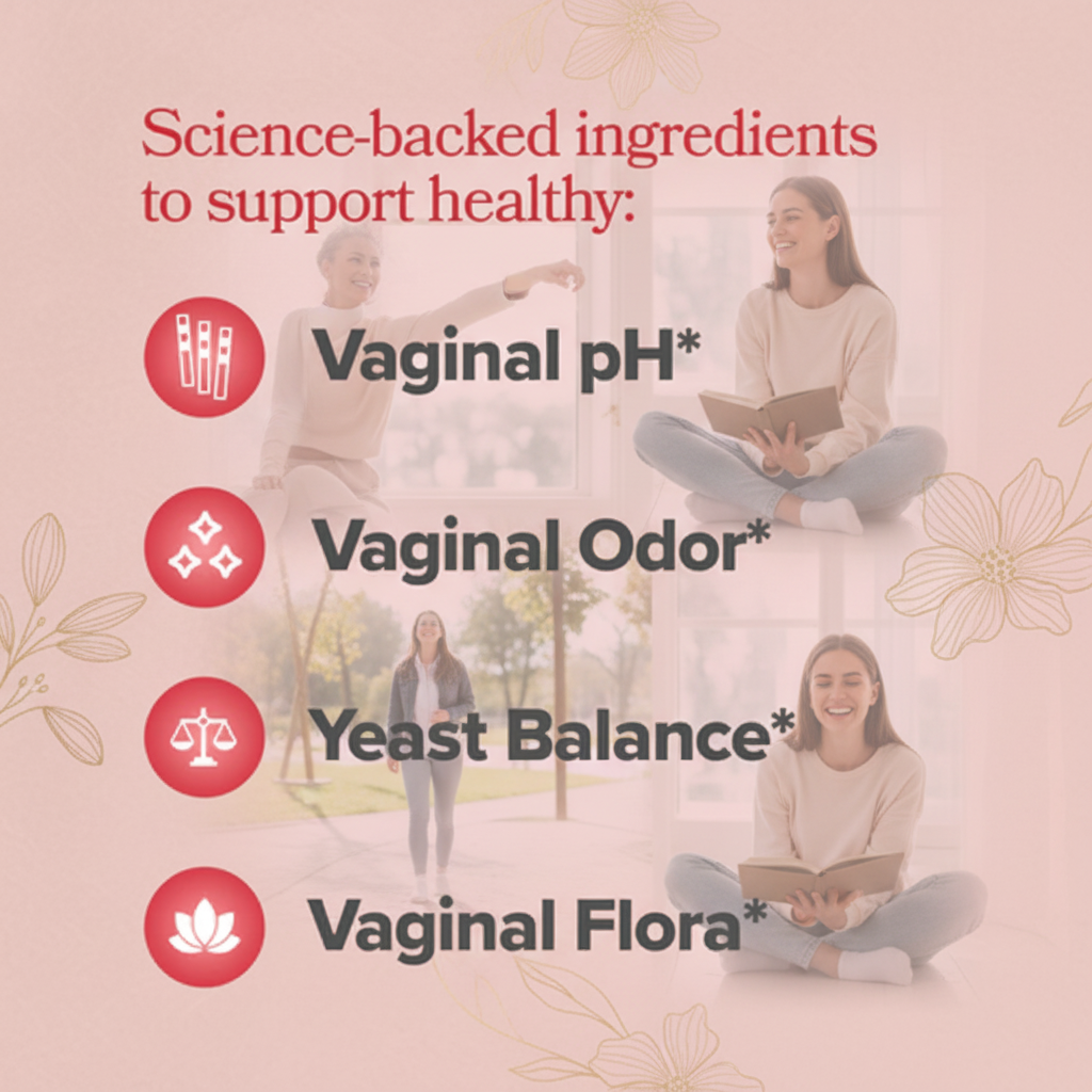 Each capsule helps nourish and restore the beneficial bacteria that keep your vaginal ecosystem strong and resilient. Balanced flora means less irritation, fewer discomforts, and better overall feminine health.